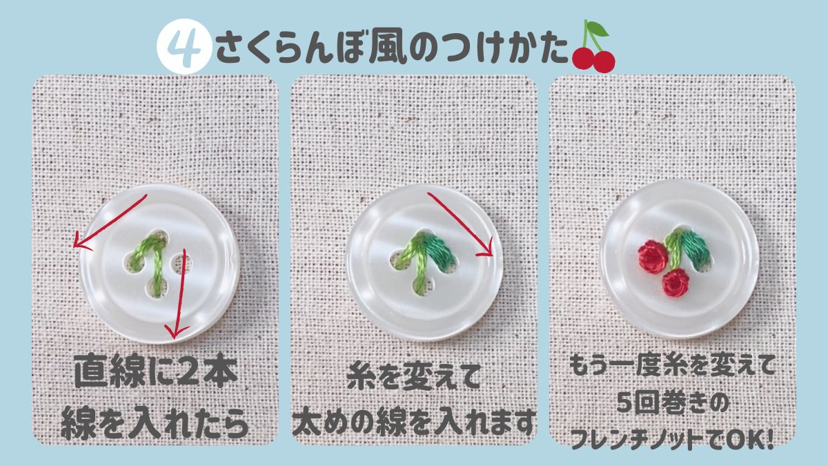 さくらんぼの刺繍🍒