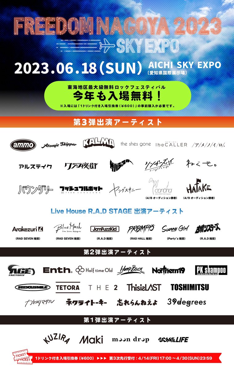 東海地区最大規模の入場無料ロックフェスティバル「FREEDOM NAGOYA」をこれから先も存続させたい!