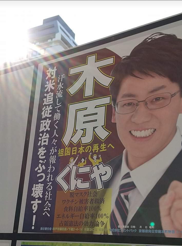 私の掲げる政策は、(1)脱マスク社会、(2)ワクチン被害者救済、(3)エネルギー・食料自給率100%、(4)占領憲法の効力論争…