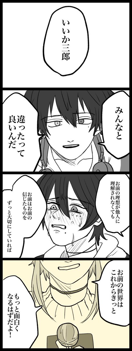 「すげえ好きな絵師さんがたまにあげるご自分の写真がさ。顔写ってなくても絶対お洒落で髪色派手で絶対強くてさ。憧れちゃうしカッケエけどあの、あ、同じオタクだと思ってたのにやっぱ人種ちゃうわってなる寂しさなんだろうね。置いてかれた感」