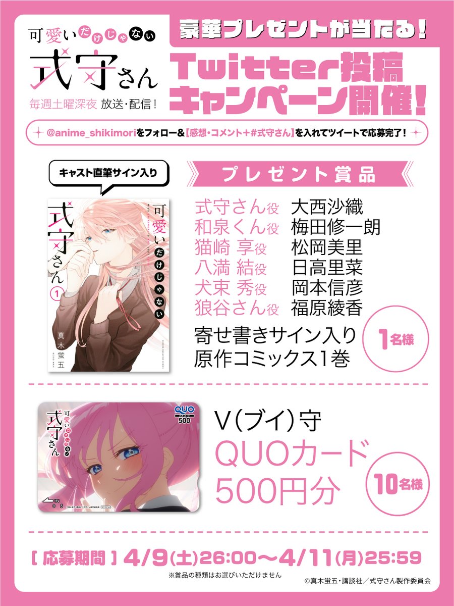 @anime_shikimoriフォロー&【アニメへの感想・コメント+#式守さん】を入れてツイートでご応募下さい♪