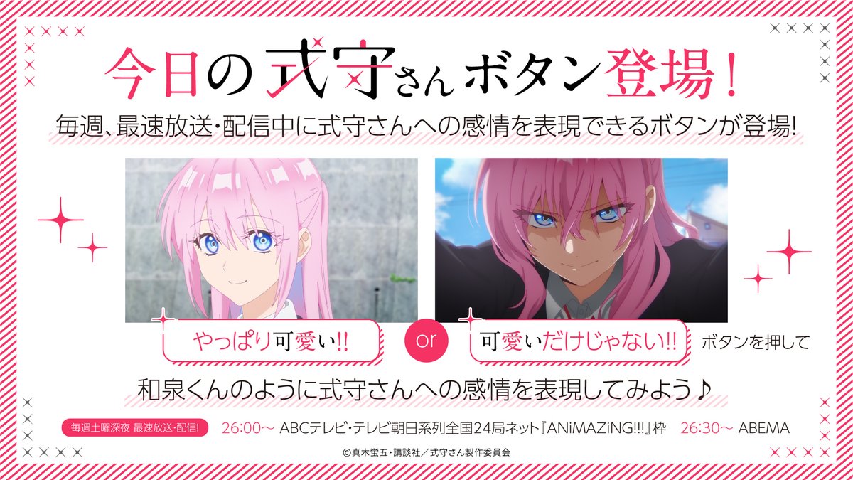 更に、最速放送・配信中に式守さんへの感情を表現できる「今日の #式守さん✨ボタン」が登場!