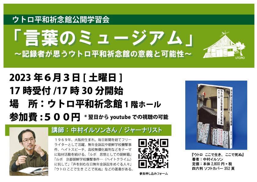 「ウトロここで生き、ここで死ぬ」の著者中村一成さんを講師に迎え公開学習会を行います!(後日配信もあり)