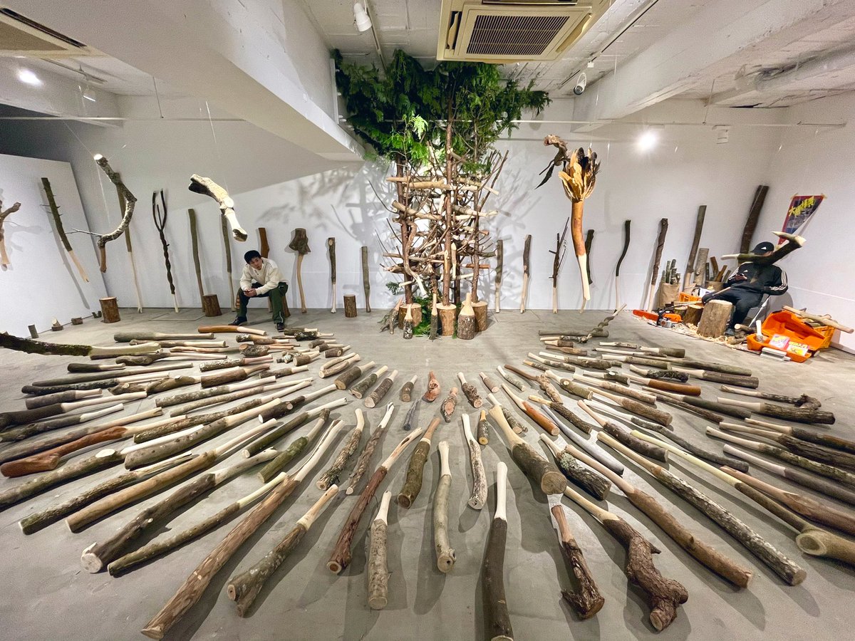 用意していた丸太が全て折れてしまったため、まだ会期中ではありますが試し殴りコーナーは終了させていただきます。 #大棍棒展