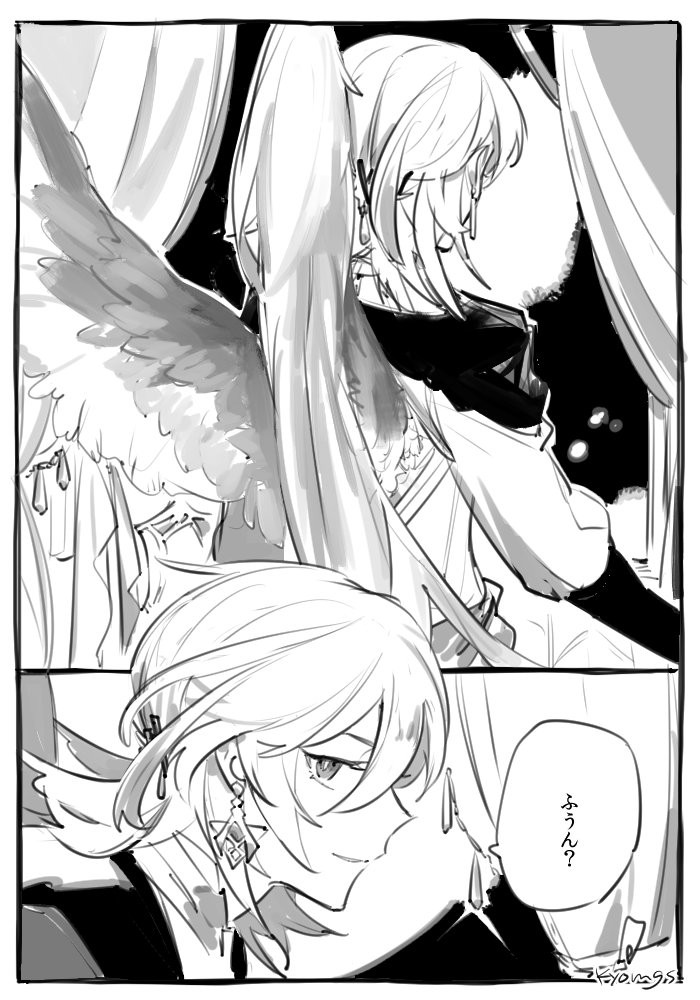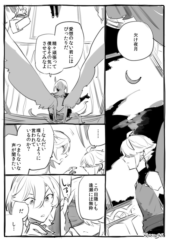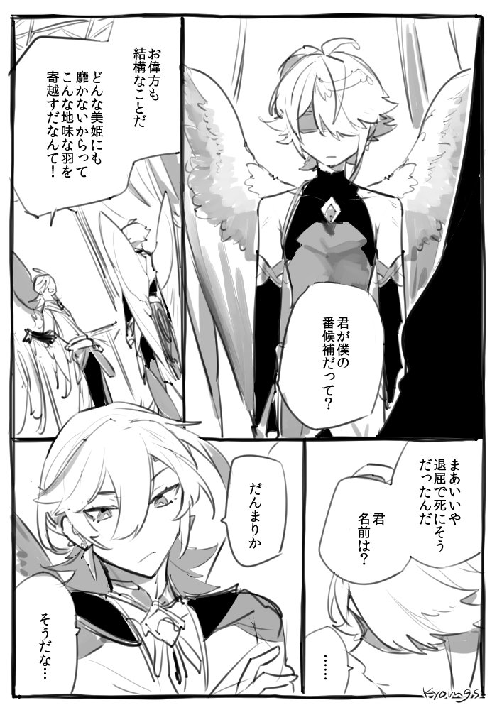 カヴェアル / 極楽の王と夜の月 ※鳥の国の王かべと灰色の羽の子ゼン※好き放題描いてる