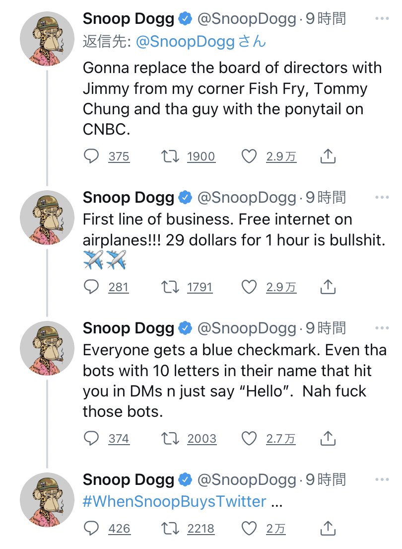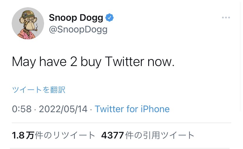 イーロン・マスクがTwitterの買収を一旦保留にしていることをツイートした後、Snoop Doggが買収の意思を見せました‼️👀