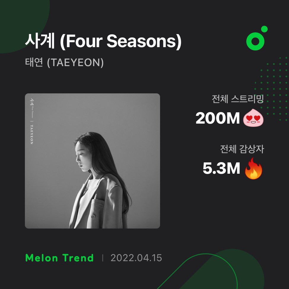 👑 Taeyeon's 'Four Seasons' hits 200 million streams on Melon 🔥