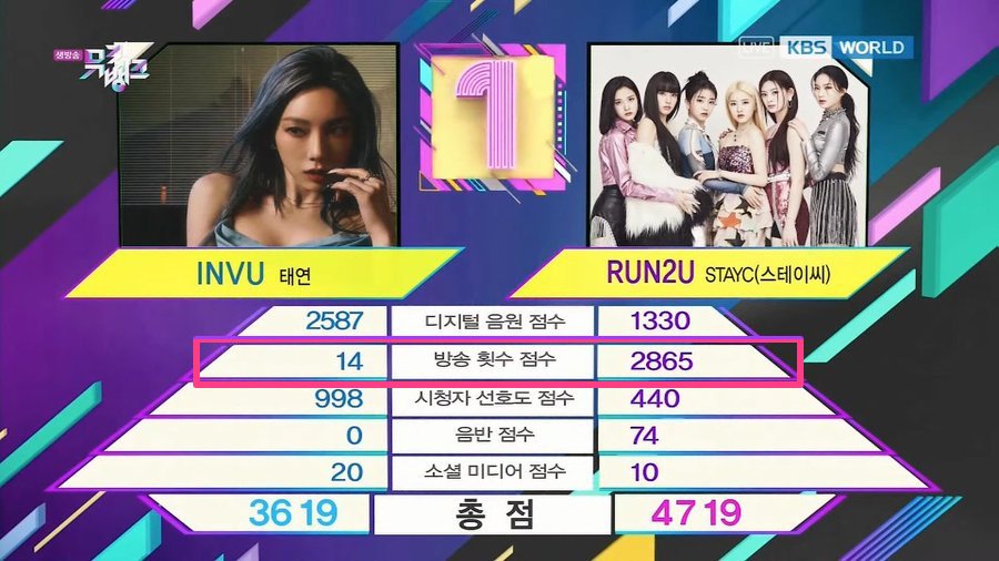 Taeyeon lost 2 times on Music Bank due to the broadcast score despite having higher digital and viewer committee scores