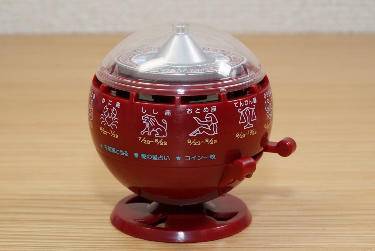バンダイのガシャポン「ミニチュア ルーレット式おみくじ器」。 レバーをスライドするとルーレットが回っておみくじが出てくる!
