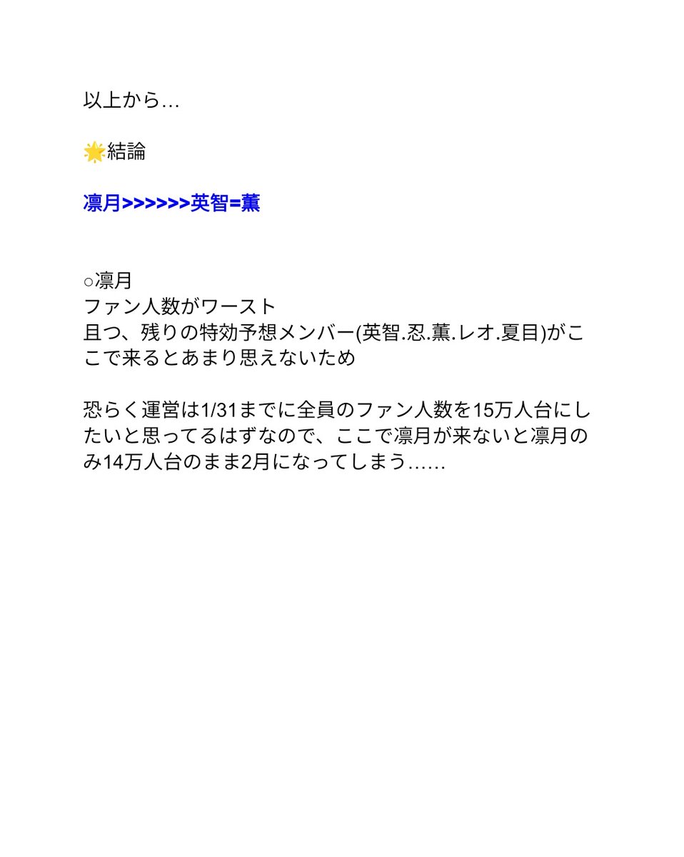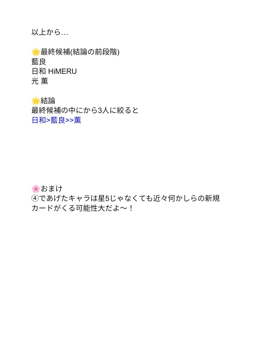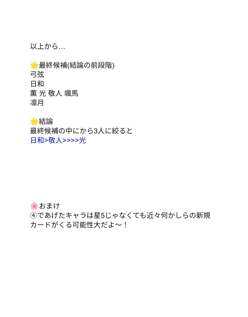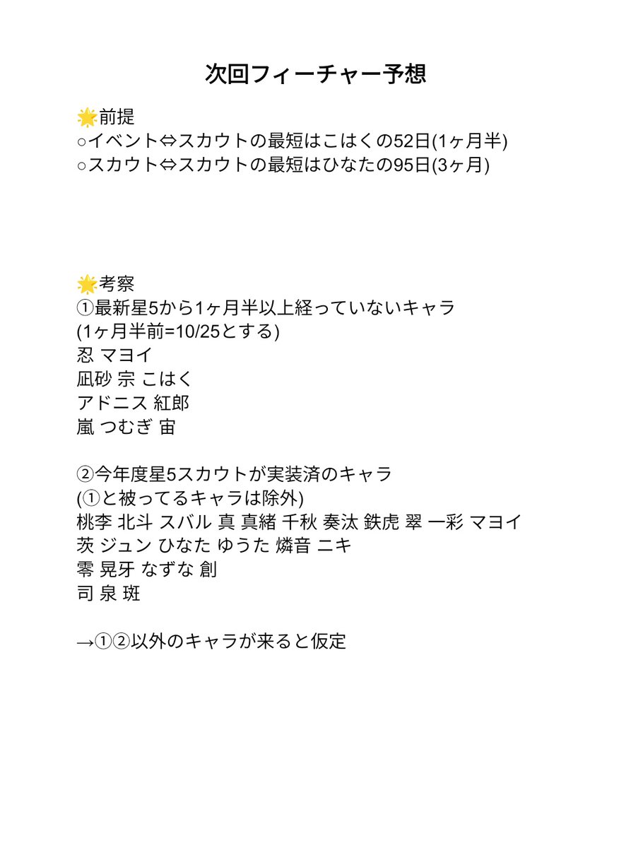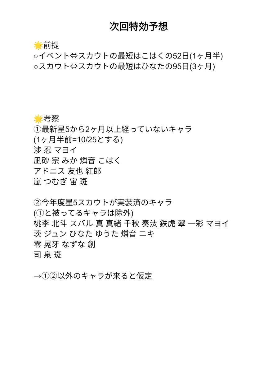 月スタ予告により1/31〜が隊箱確定しちゃって急に1/15〜がわからなくなってきました