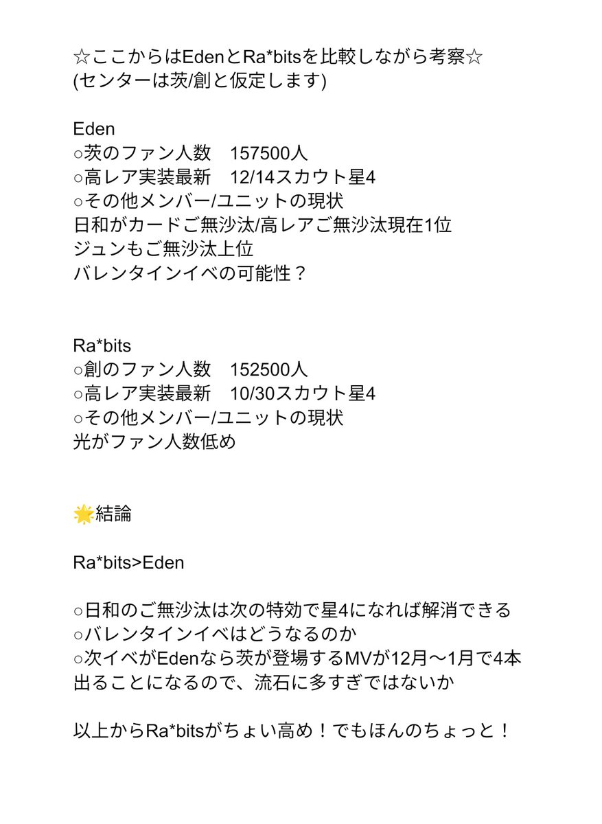 日和星5&ジュン星4が1/25〜だったのに約半月でEdenイベが来るってことは2/15にしなければならない理由があったのでは…?とバレンタインイベを熱望してるオタクは考えてしまう