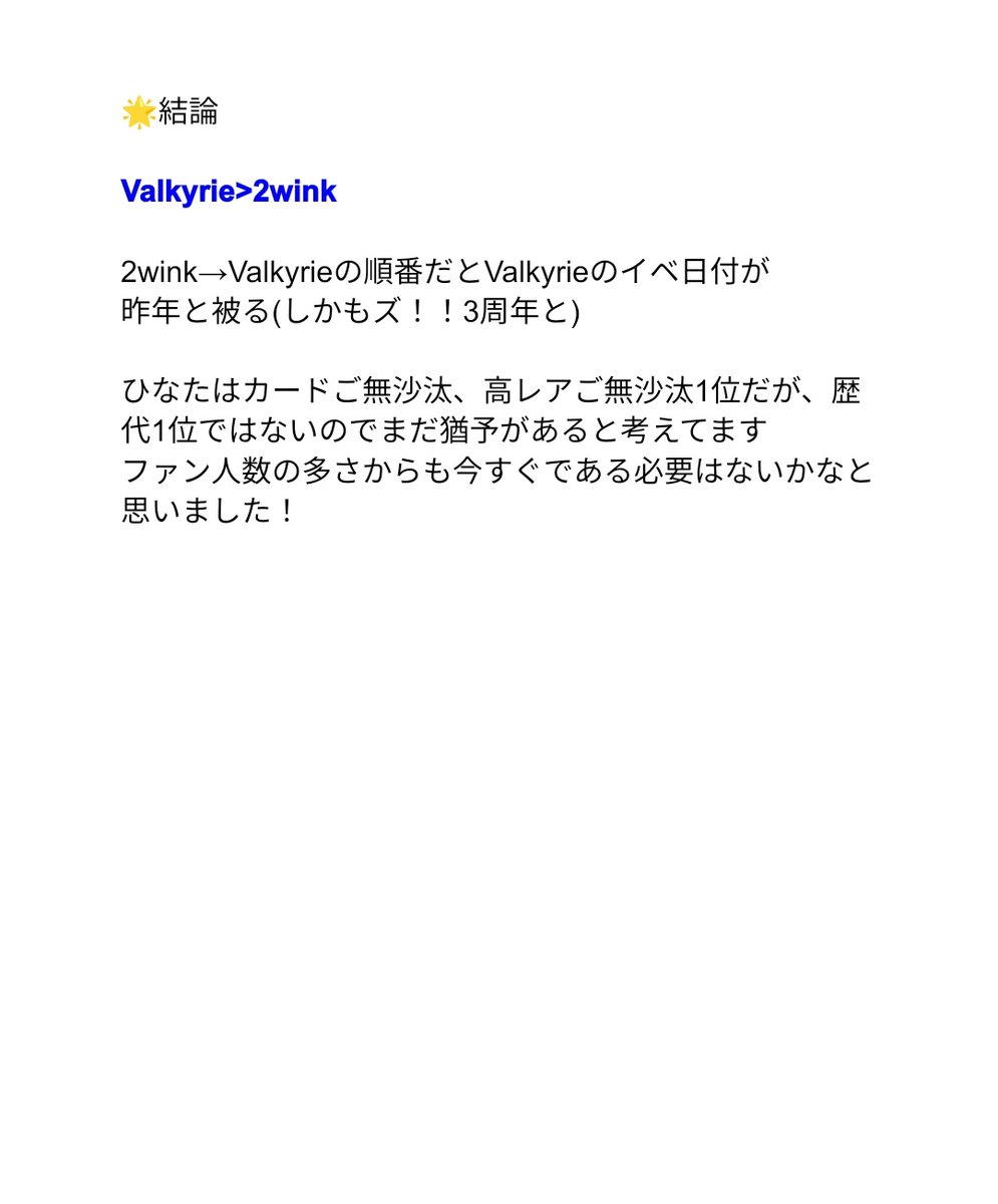2wink→Valkyrie→特別イベント