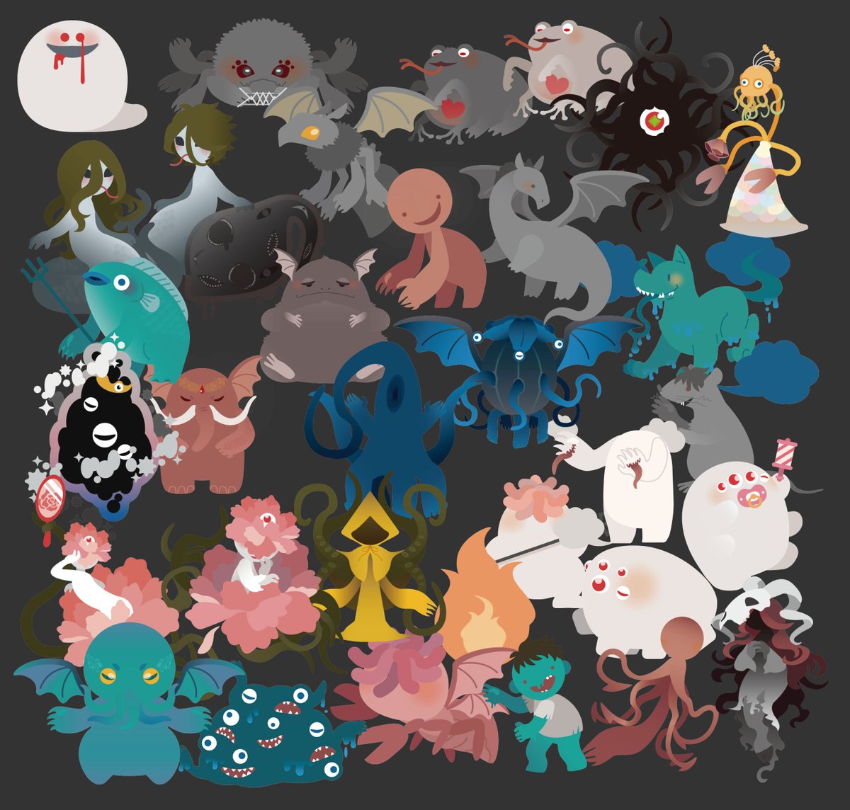 深夜ですが「探索者達を苦しめる神格・神話生物がこんなに可愛いはずがない。」に数点追加いたしまして現在36点の神話生物・神格のデフォルメアイコンがあります。