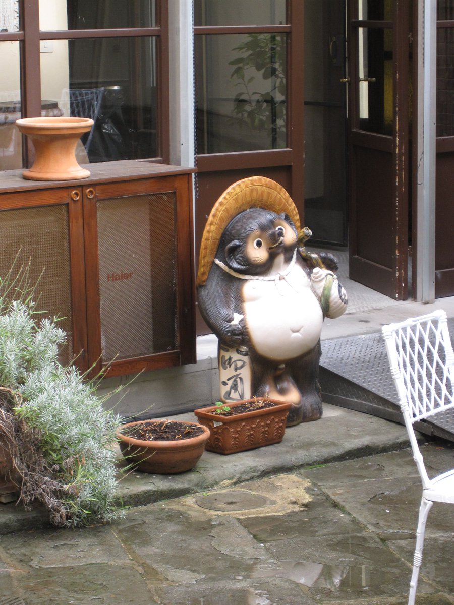 中庭に何故か信楽焼のたぬきが鎮座していた。なんでだ。