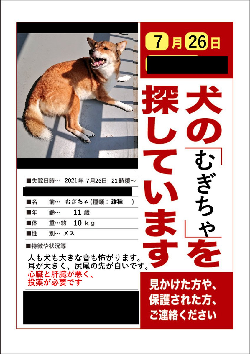 とにかく目撃情報が欲しいです。近隣でなくとも大阪市外・尼崎市などで似た野良犬を見た程度でも構いません。