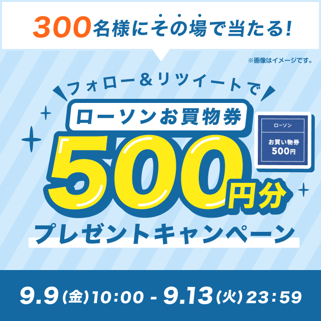 フォロー&RTすると300名様に抽選で「ローソンの500円お買物券」が当たる🎉