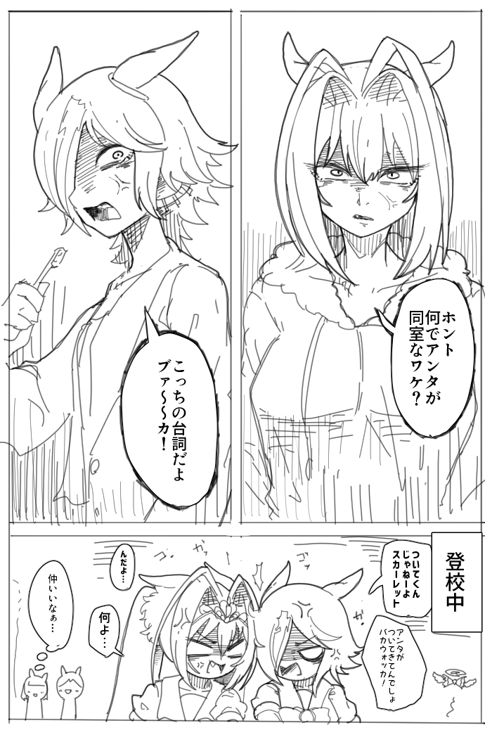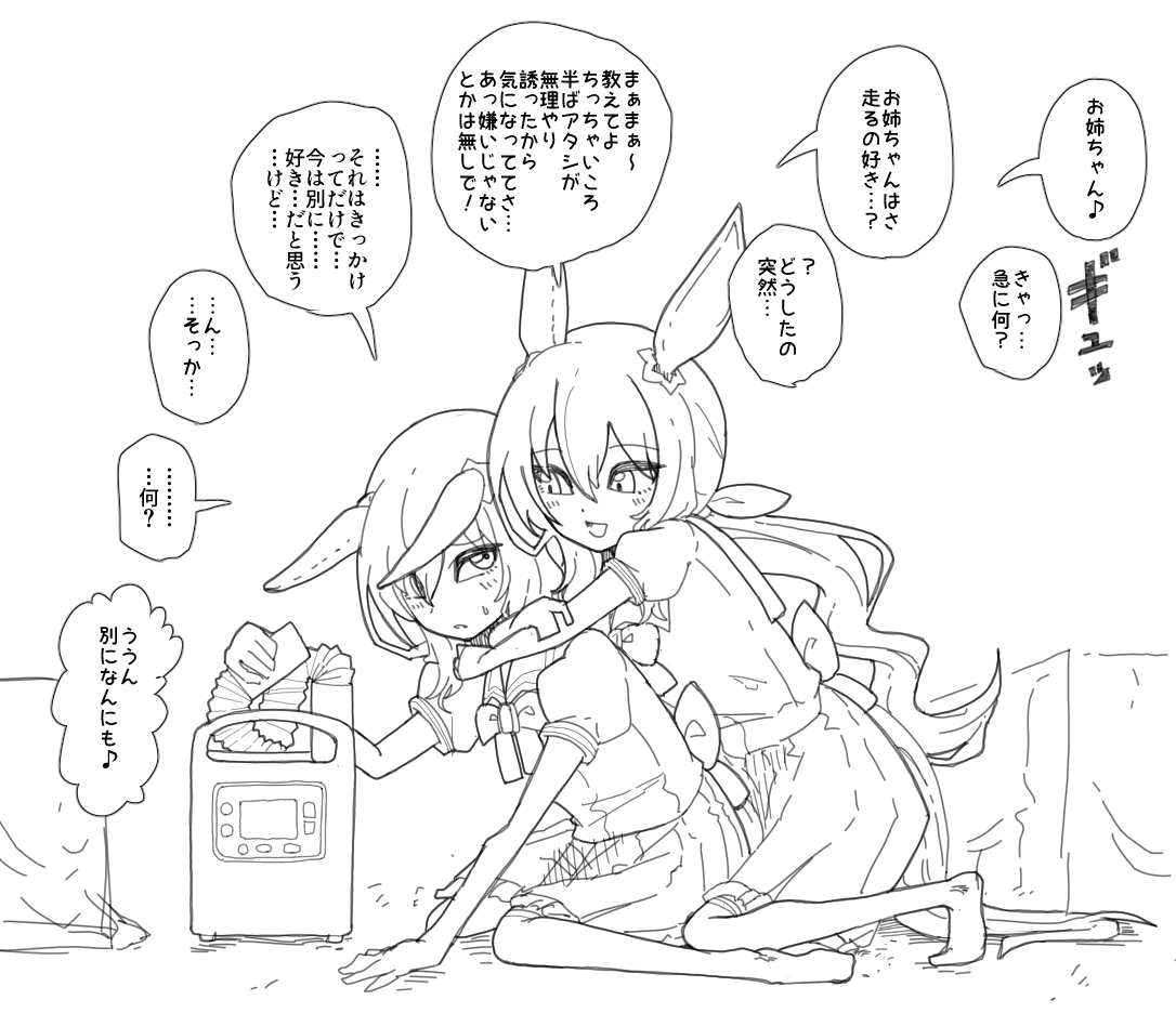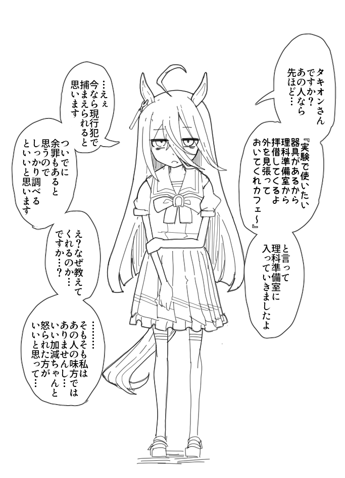 夏のCMでスカーレットが来た瞬間に薬品を隠すタキオンが可愛すぎたので描きました。