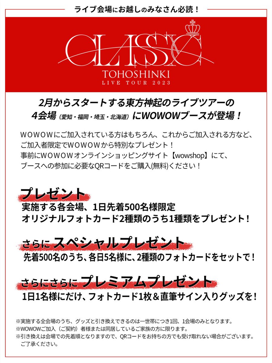 #東方神起 ツアーの愛知・福岡・埼玉・北海道会場に #WOWOW ブースが登場!