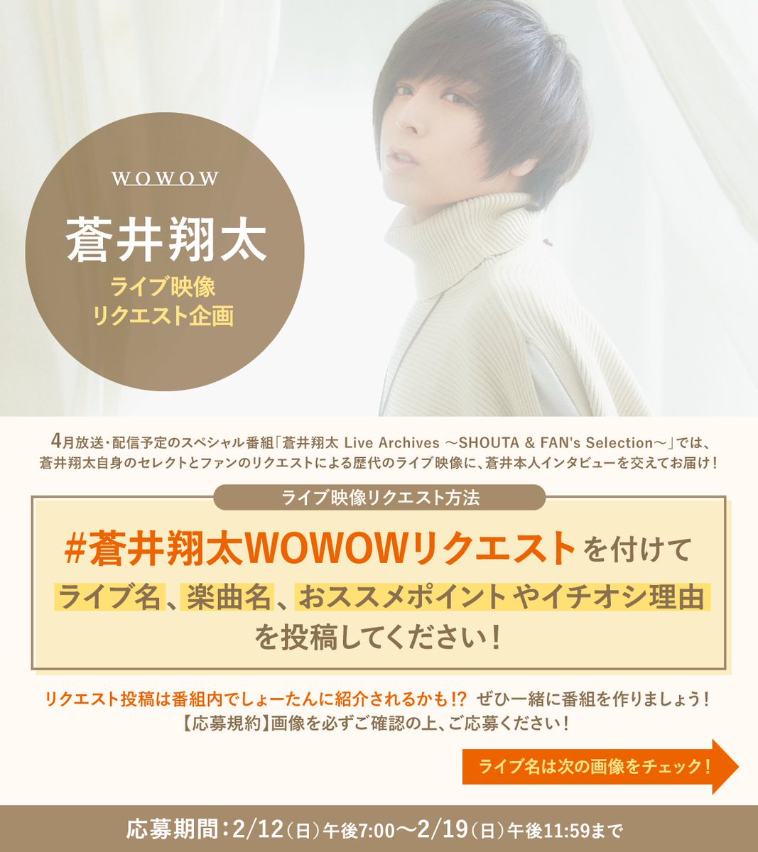 #蒼井翔太WOWOWリクエスト を付けてツイート❗