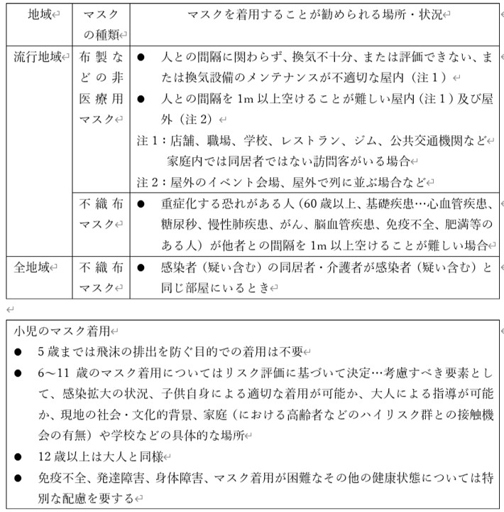 WHOのマスクの使用に関する暫定ガイダンス
