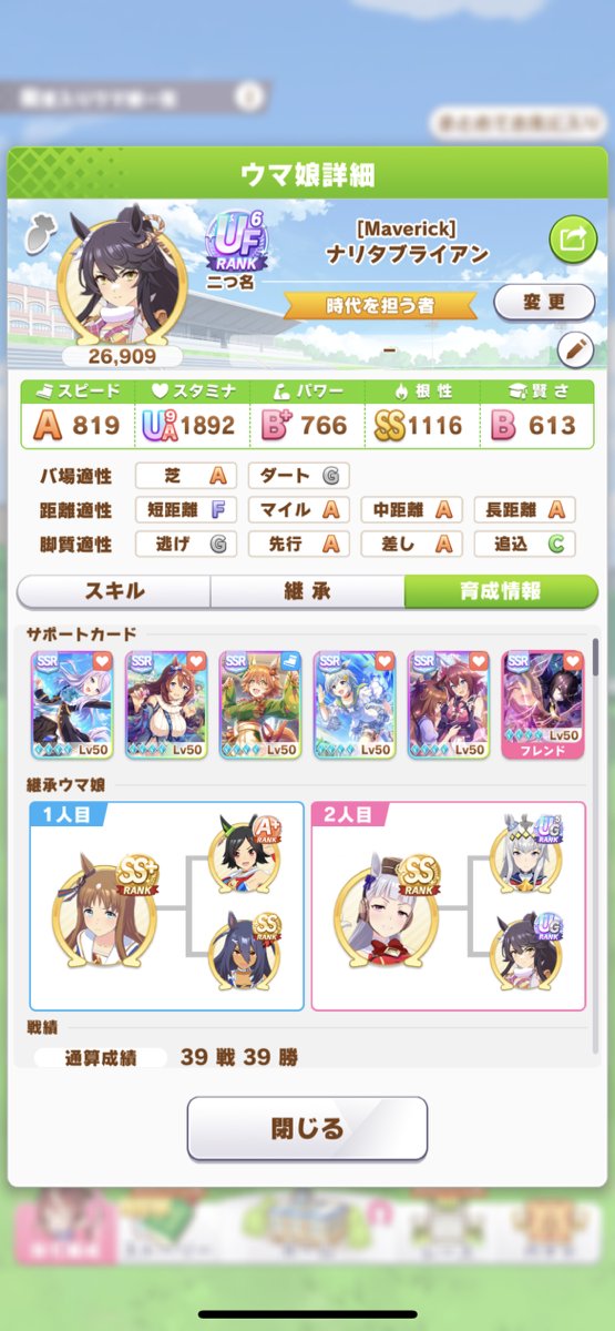 世界初UG9オグリのサポカ編成はこちらです!