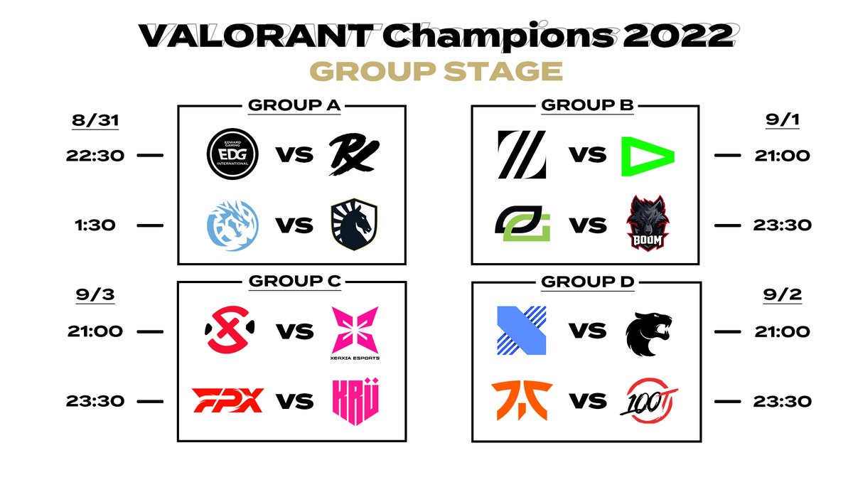 #VALORANTChampions 2022 グループステージの対戦表が発表🧐
