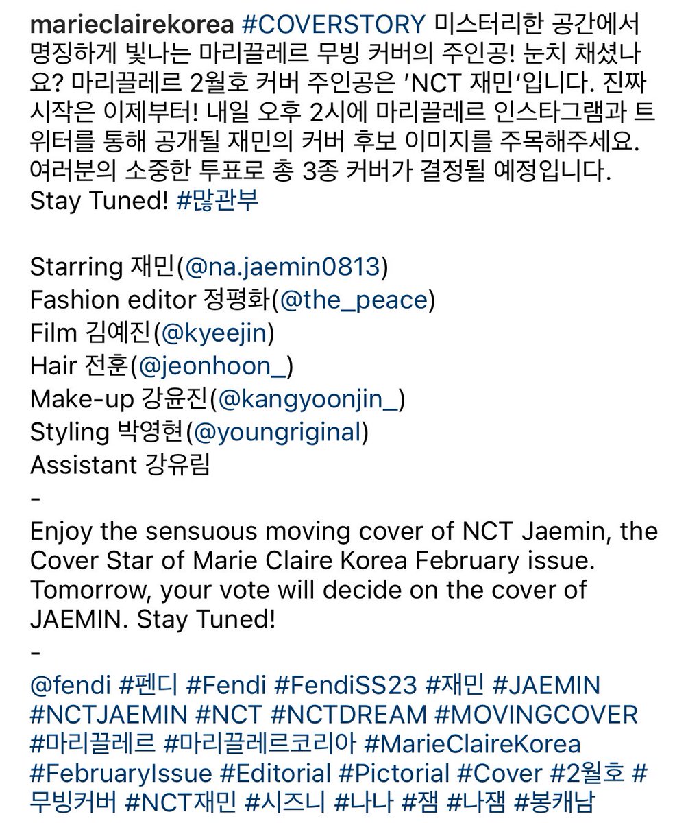 marieclairekorea 인스타 COVERSTORY 재민💙