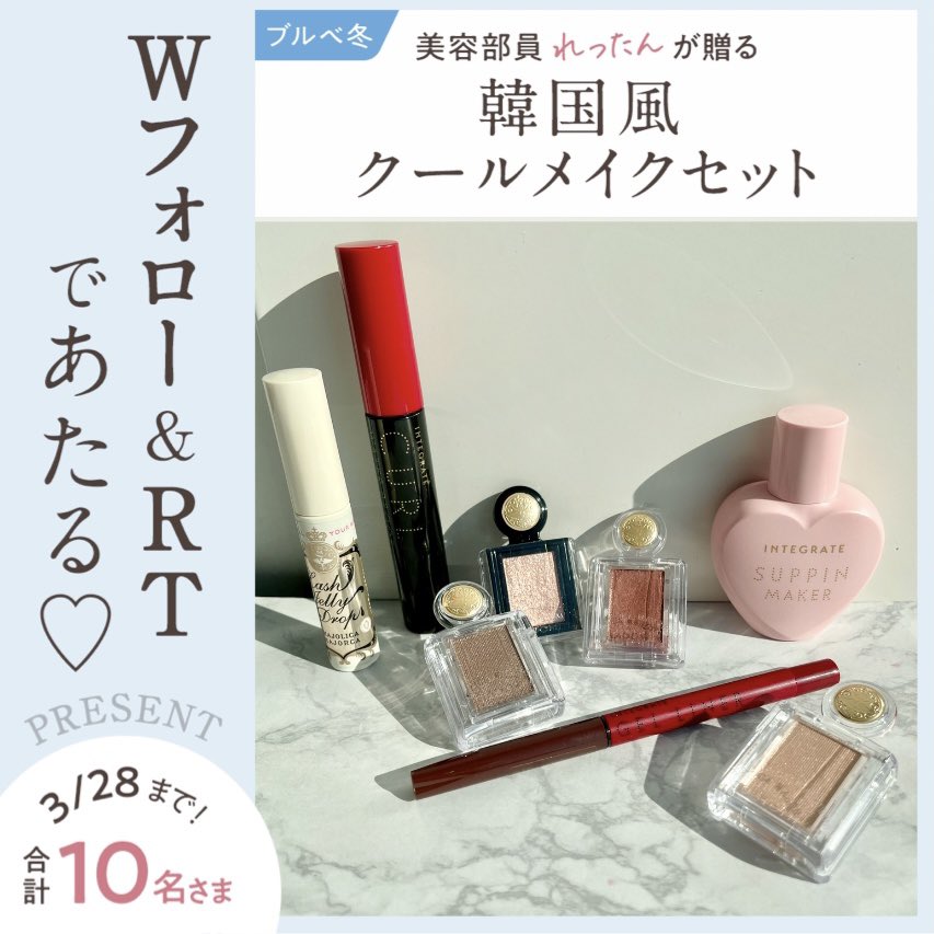/ Wフォロー&RTで当たる! \ 朗報です!なんとフェイスコーディネートができちゃう韓国風クール♥メイクセットをプレゼントします✨ 是非ゲットしてください★ 【応募方法】 ①本アカウントと資生堂ビューティージャーニー(
