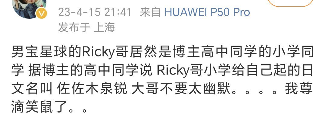 เพื่อนของริคกี้ออกมาบอกว่าริคกี้ตั้งชื่อญี่ปุ่นให้ตัวเองด้วย ชื่อว่า “ซาซากิ เฉวียนรุ่ย” หรือ “ซาซากิ อิซูมิ รุ่ย” (เรียกได้สองแบบ) โดยซาซากิเป็นนามสกุลที่ที่บ้านใช้กันในญป.อยู่แล้ว ส่วนชื่อตัวเองคือก็ดัดแปลงมาจากตัวจีน เลยออกมาแบบนี้😂❣️