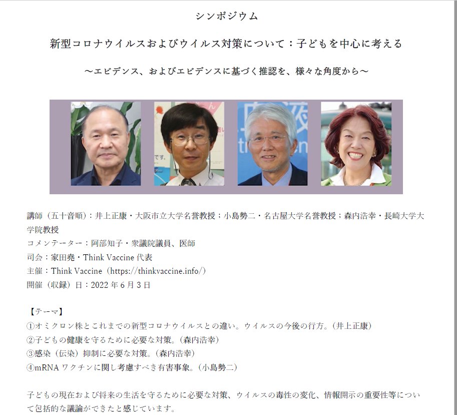 @hudikaha 昨日の分科会は異常でした。接種しないから「感染を拡げた」子どもに「打っていただく」ためには何をすべきか、が積極的に議論されていました。「家族のため」というモットーも多く聞かれました。VEの持続期間の周知に関する議論は皆無。小児自身の健康に関する議論はほぼ皆無。とにかく打ってほしい。