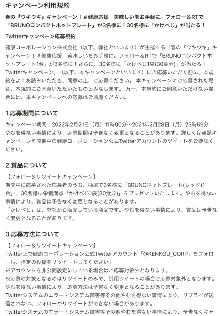 2月28日(月)までにこの投稿を”フォロー&RT”
