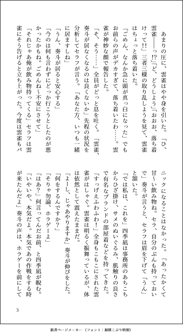 ※二次創作 ※捏造/不穏/怪我描写あり にじそうさく07新刊です。未完の為、全文掲載します(1/3)