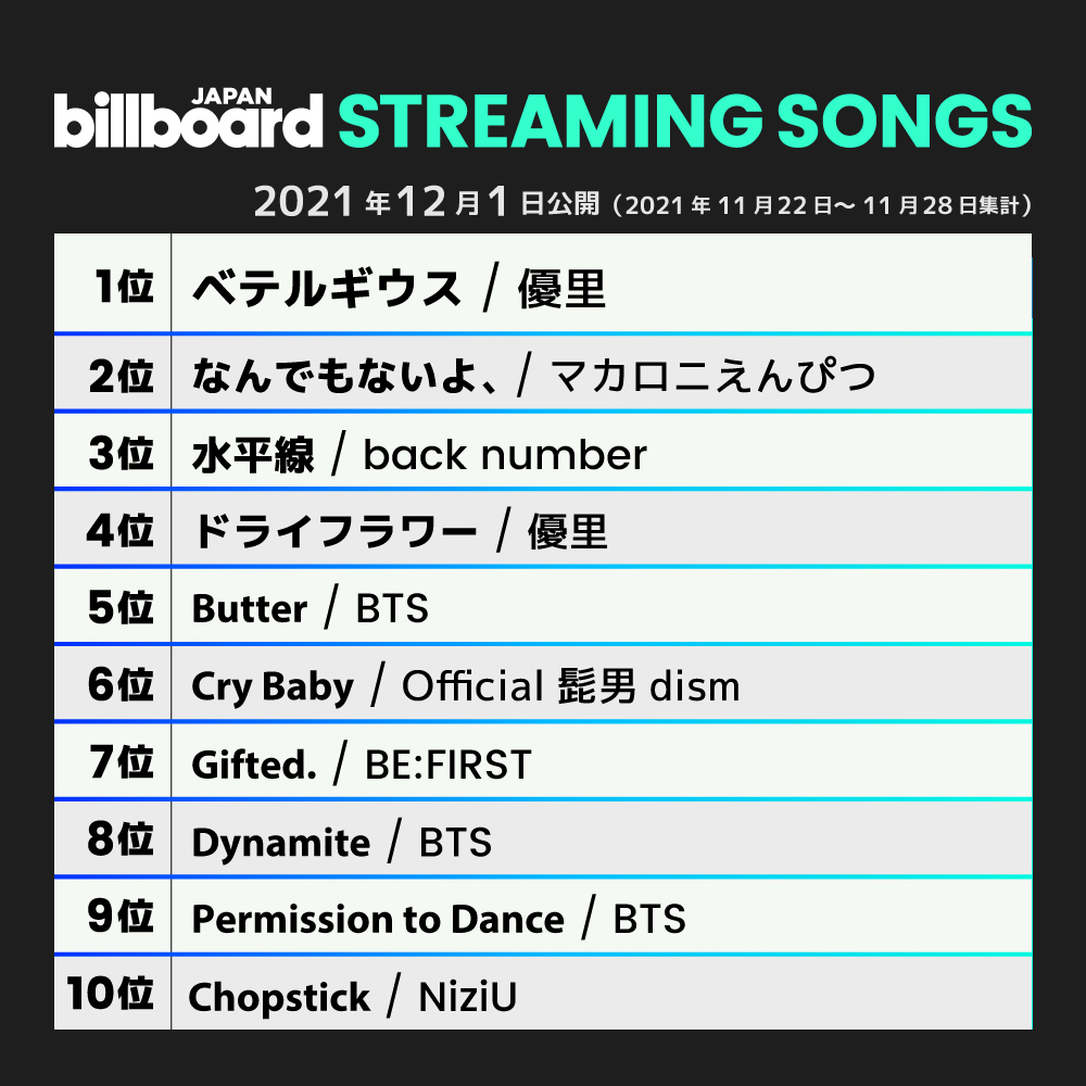 【今週のストリーミング・ソング・チャート“Streaming Songs”】