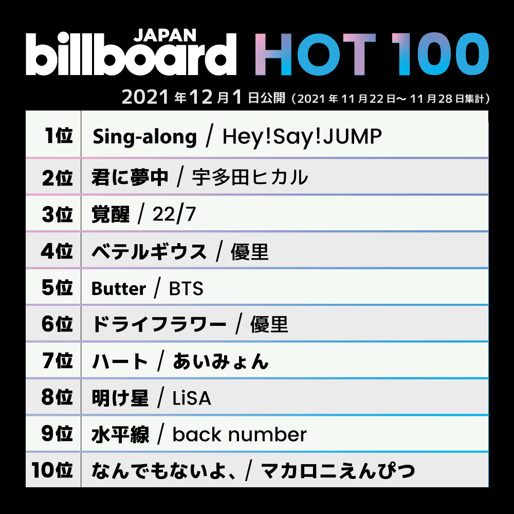 【先ヨミ】Hey! Say! JUMP『Sing-along』17万枚で現在シングル1位 billboard-japan.com/d_news/detail/…