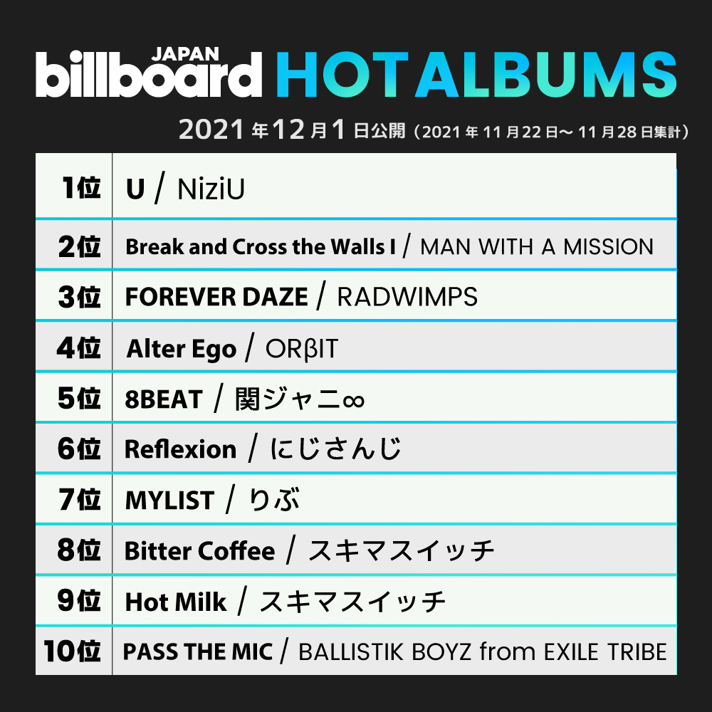 【今週の総合アルバム・チャート“HOT ALBUMS”】