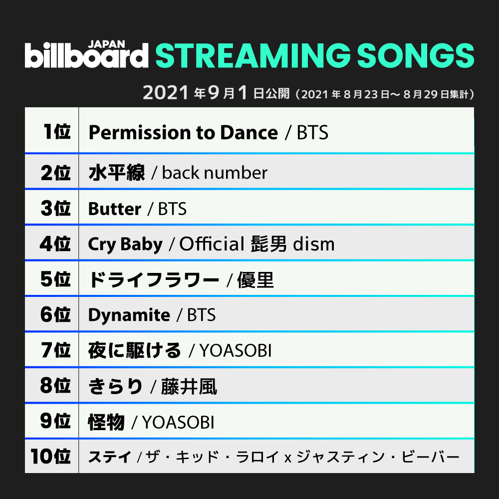 【今週のストリーミング・ソング・チャート“Streaming Songs”】
