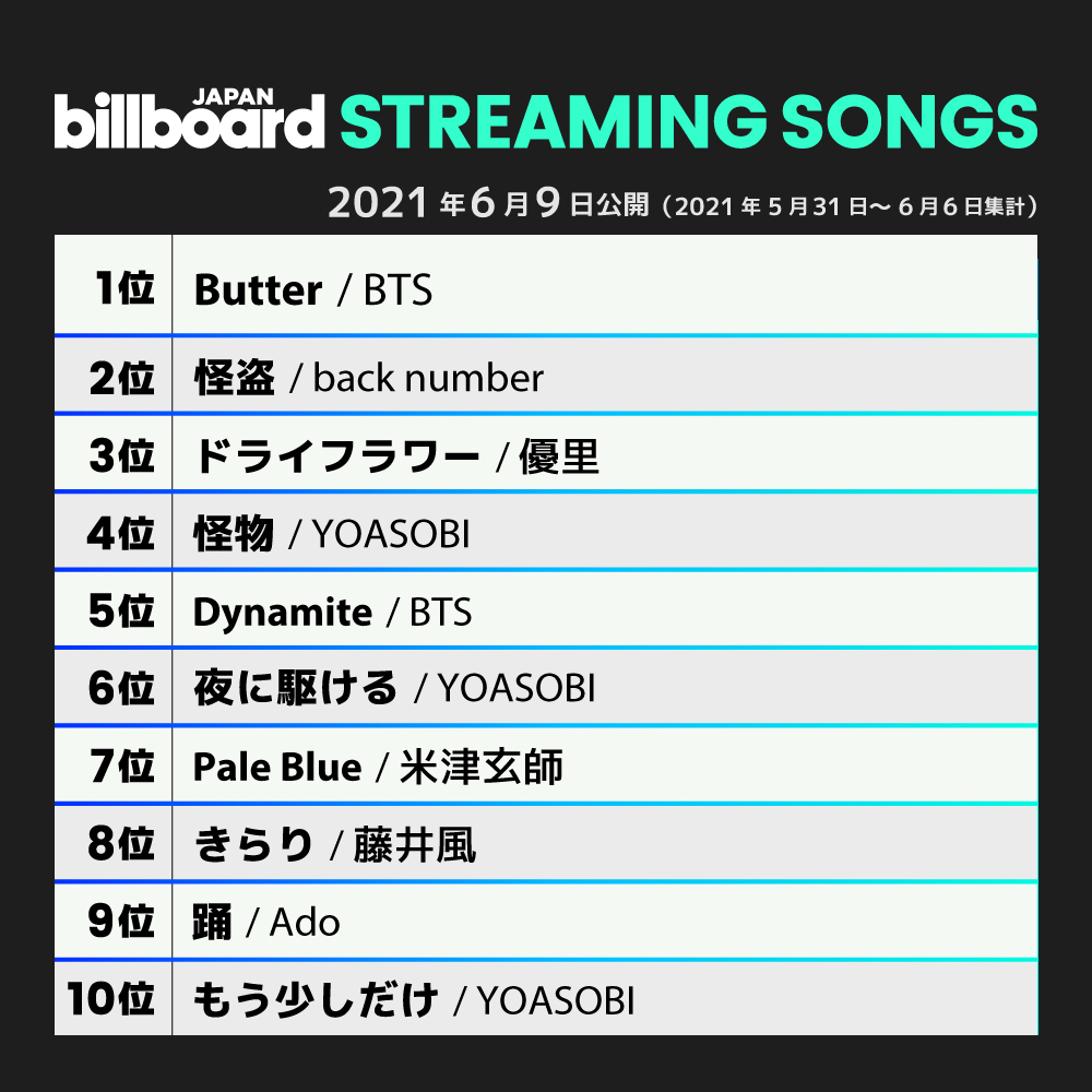 【今週のストリーミング・ソング・チャート“Streaming Songs”】
