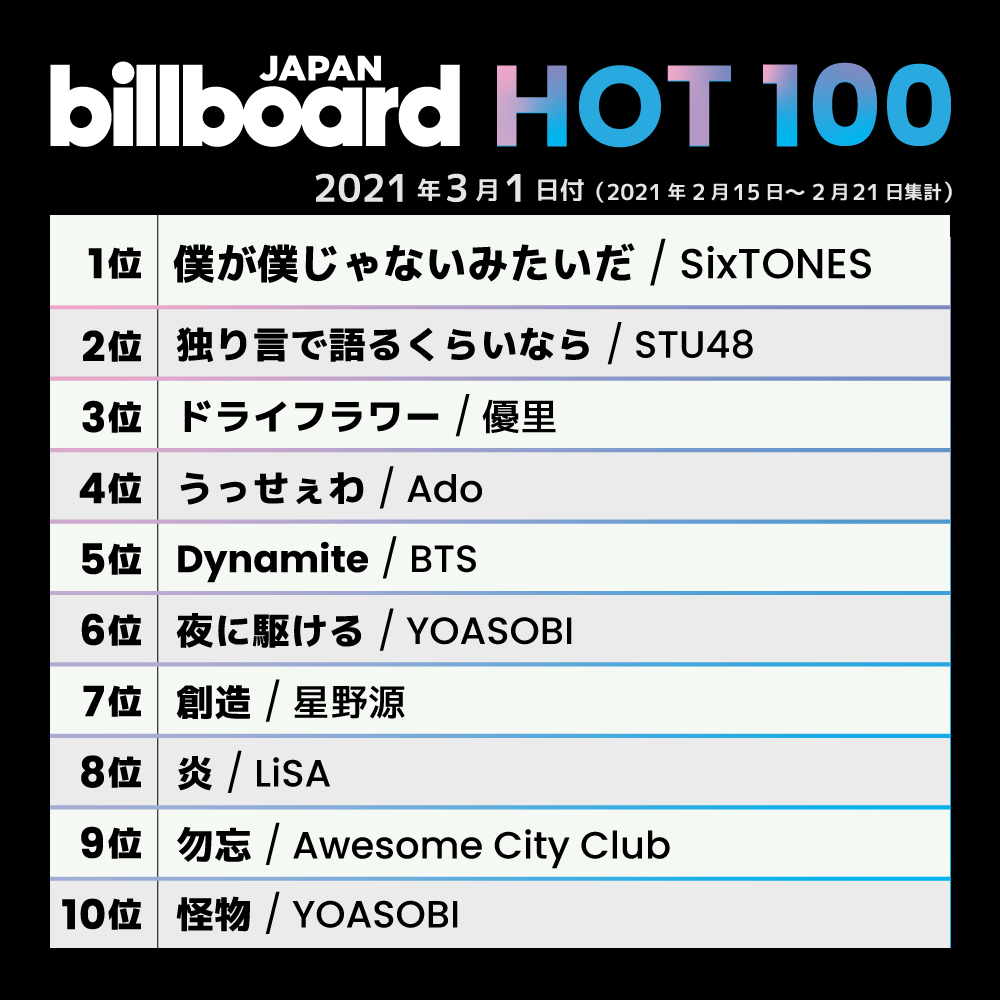 【今週の総合ソング・チャート“JAPAN HOT100”】