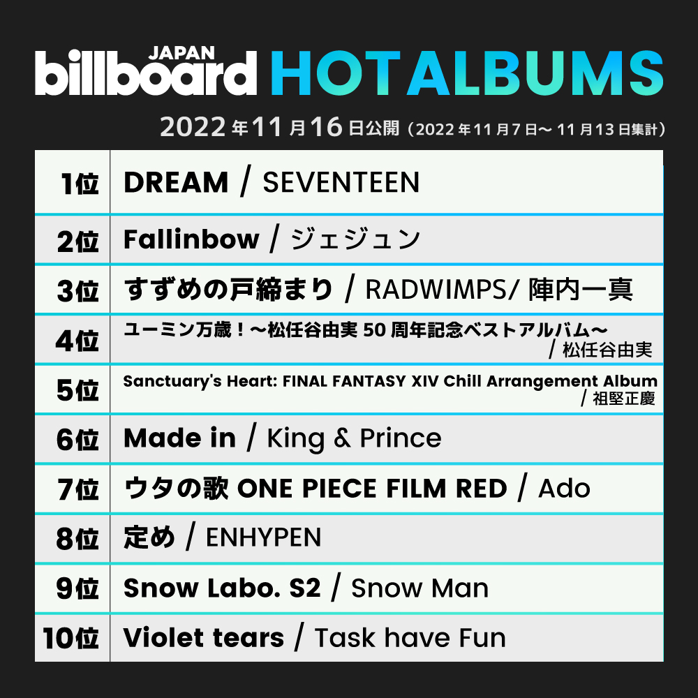 【今週の総合アルバム・チャート“HOT ALBUMS”】