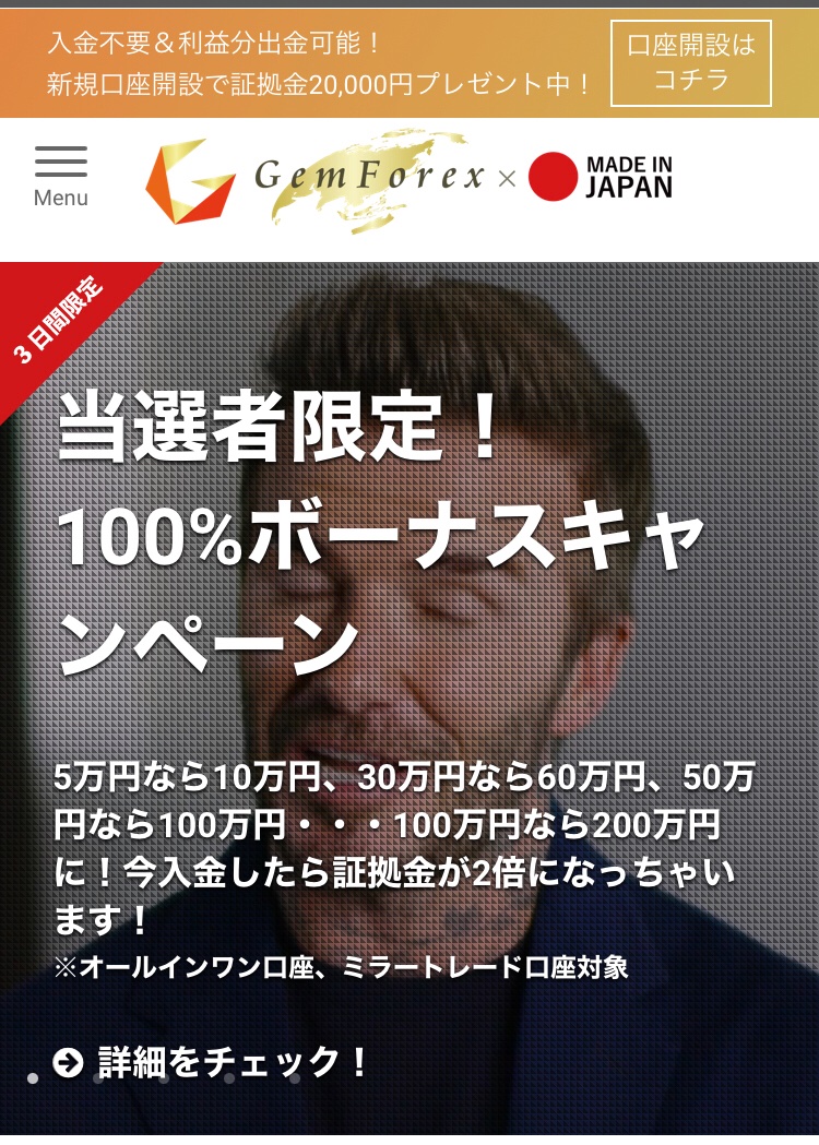 ゲムフォレックスが入金ボーナス100%ボーナス!!