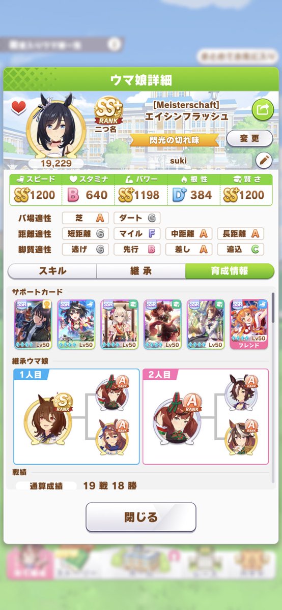 エイシンフラッシュでSS+ランク育成できましたあああ!!!!! 嬉しすぎて今心臓が…心臓が……!!!!