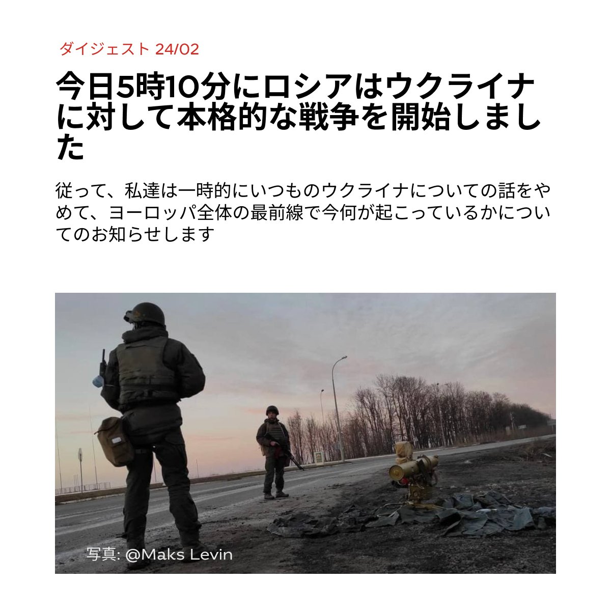 そうなれば、ウクライナは落ちないし、独裁政権は西に移動できなくなります。結局のところ、プーチンによって宣言された戦争はウクライナだけとの戦争ではなく、ヨーロッパ全体と民主主義との戦争です。