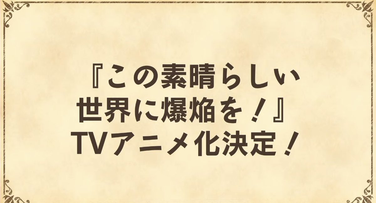 『この素晴らしい世界に爆焔を!』がTVアニメ化決定‼️