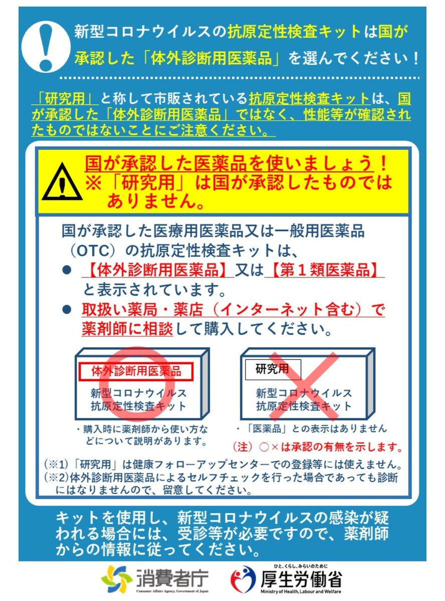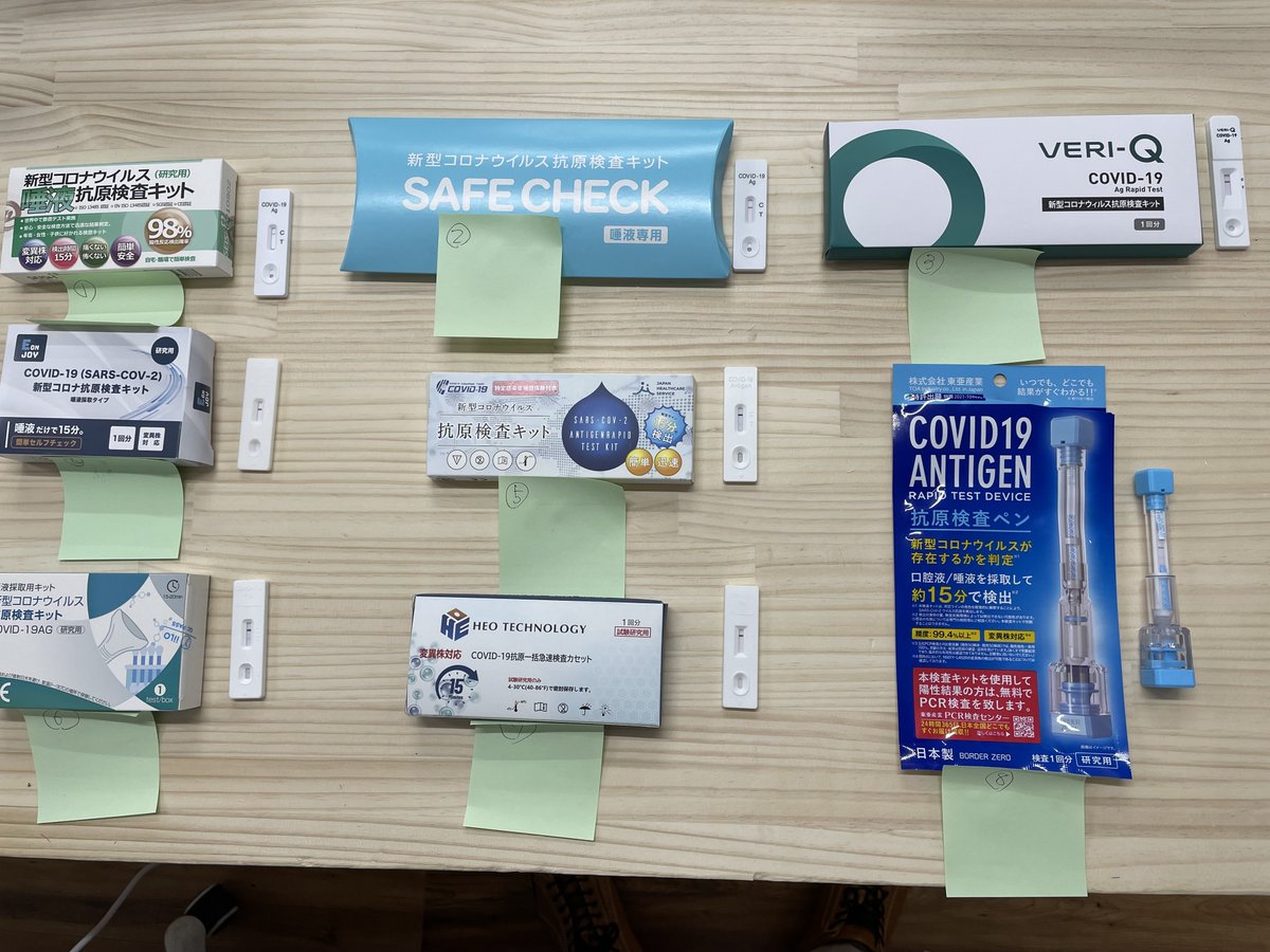 この記事、「研究用」として販売されている抗原検査キットを陽性者の方に試してもらっていますが、どれもダメダメですね。ちゃんと抗原検査キットは薬剤師さんから「医療用」を買いましょう。