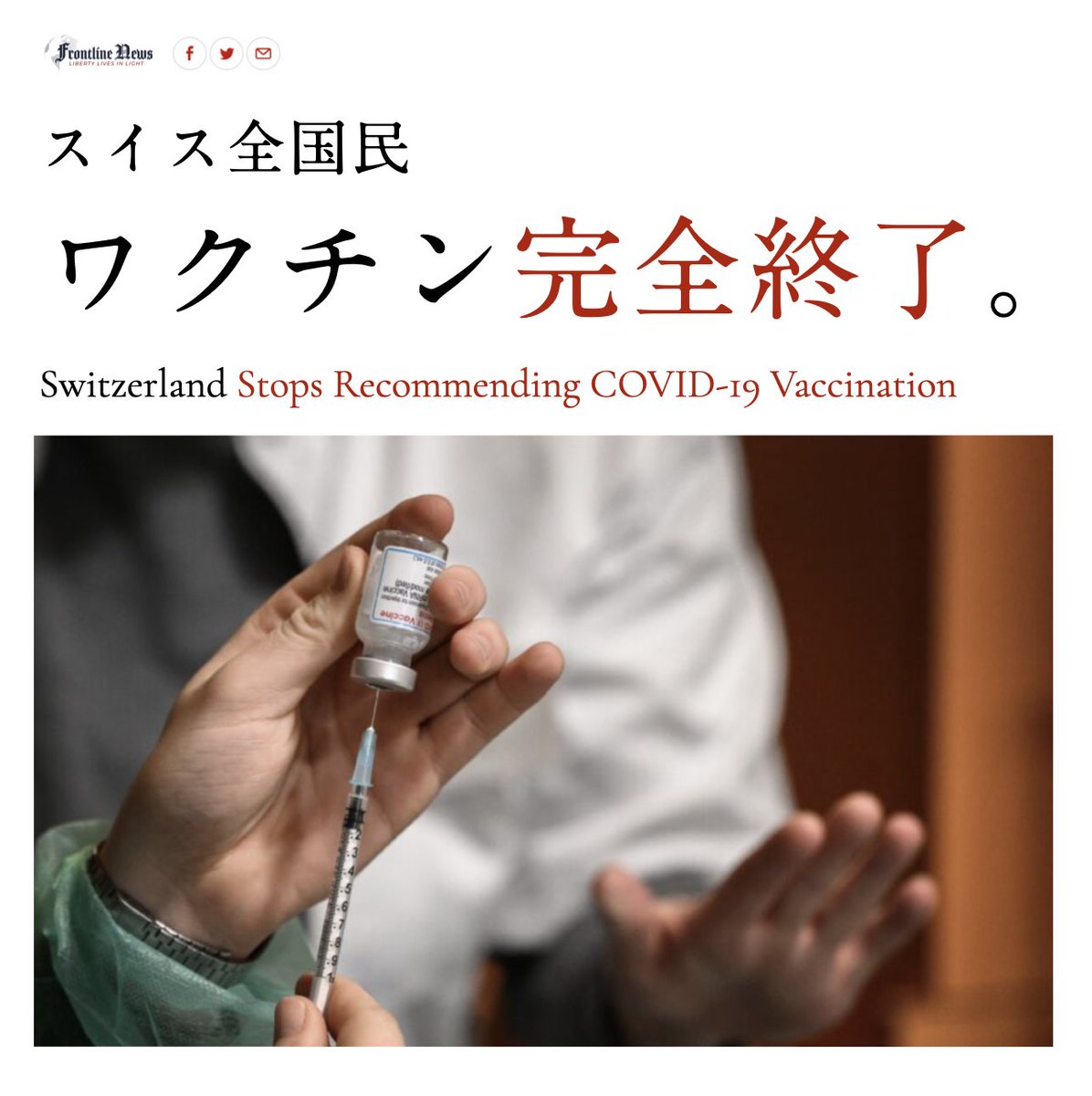 スイスは、コロナの高リスクに指定されている人を含め、コロナワクチン接種の推奨を中止しました。