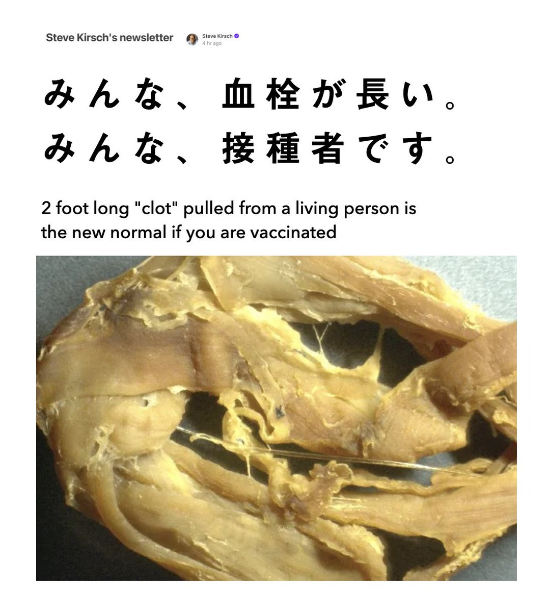 「今までは、数cm程度。今や60cmの血栓。みんな、ワクチン接種者です」そりゃ、心臓も止まるわ。