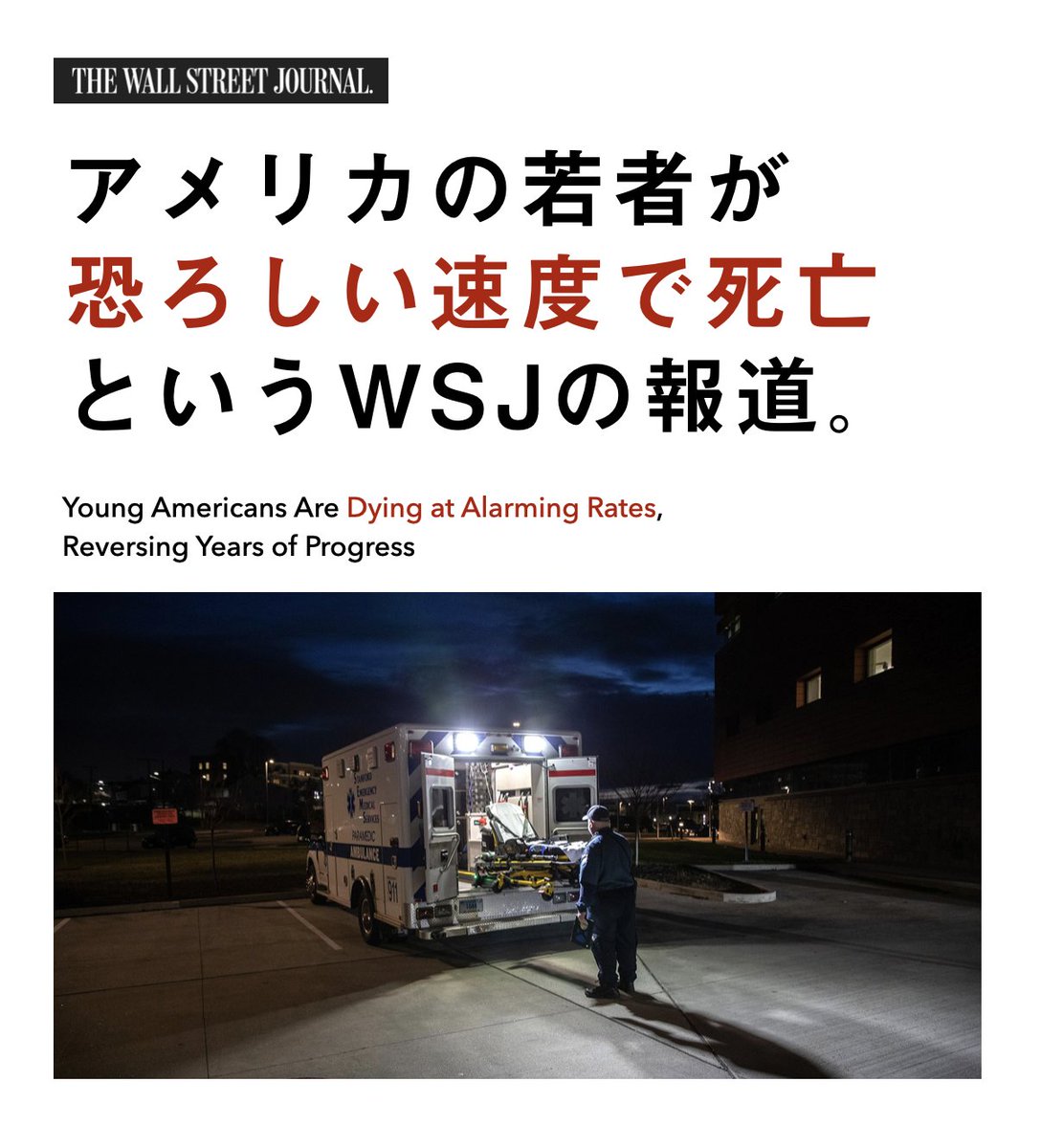 着実に低下してきた若者の死亡率が、この数年間で、急激に上昇し、過去15年間で最高値に達した。WSJなので「ワクチン」などとは書かないが「主因は、ワクチン」である。