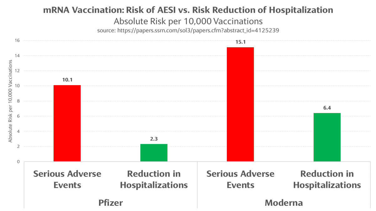 ワクチンは「入院を減らす効果(緑)」より「重毒な有害事象を発生(赤)」させていた。∴ 💉=重症化