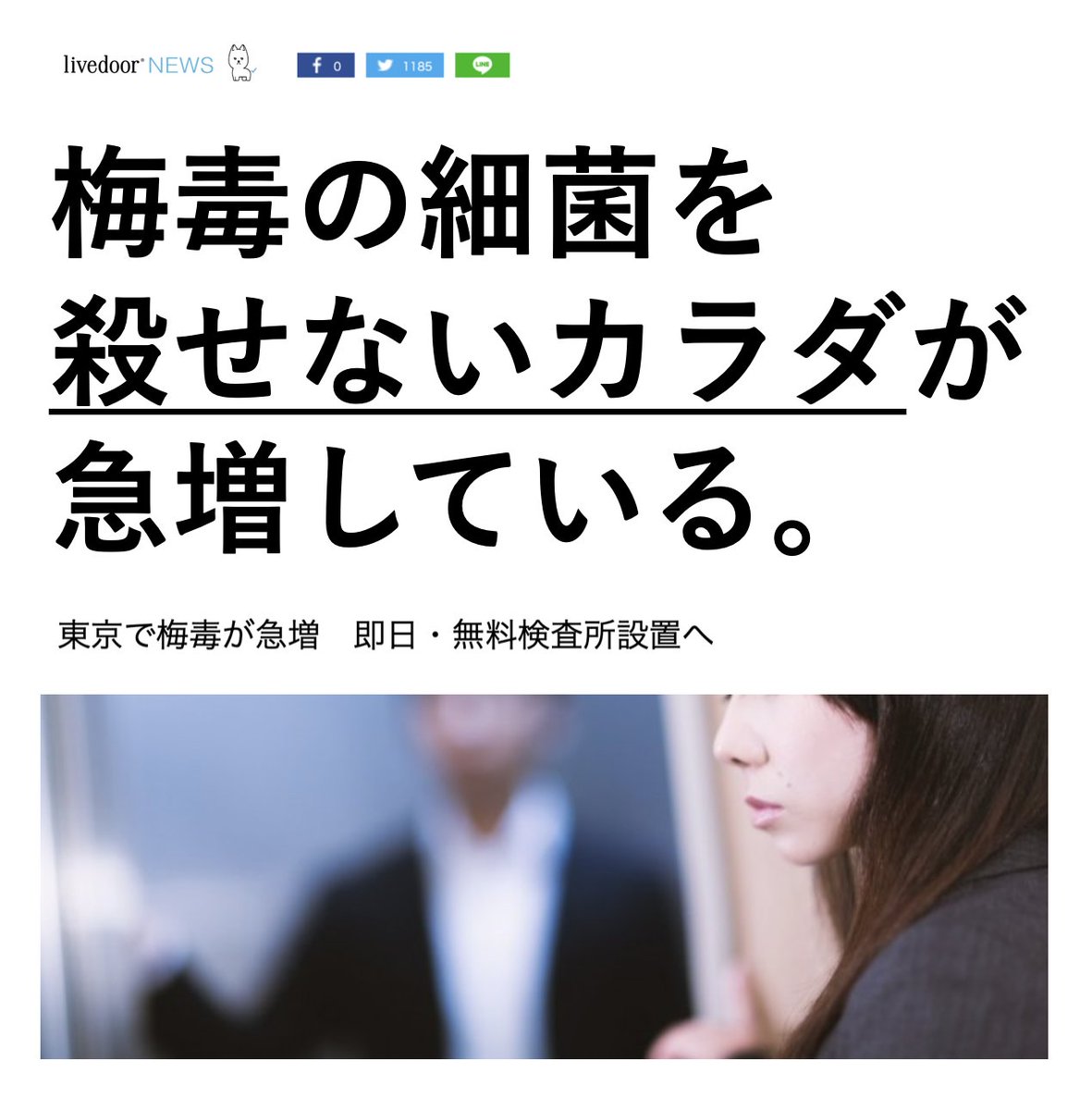 東京都、梅毒患者が過去最高に。細菌はウィルスと異なり単一で増殖できます。ワクチンの免疫低下により細菌(梅毒トレポネーマ)を殺せない"カラダ"が増加しています。