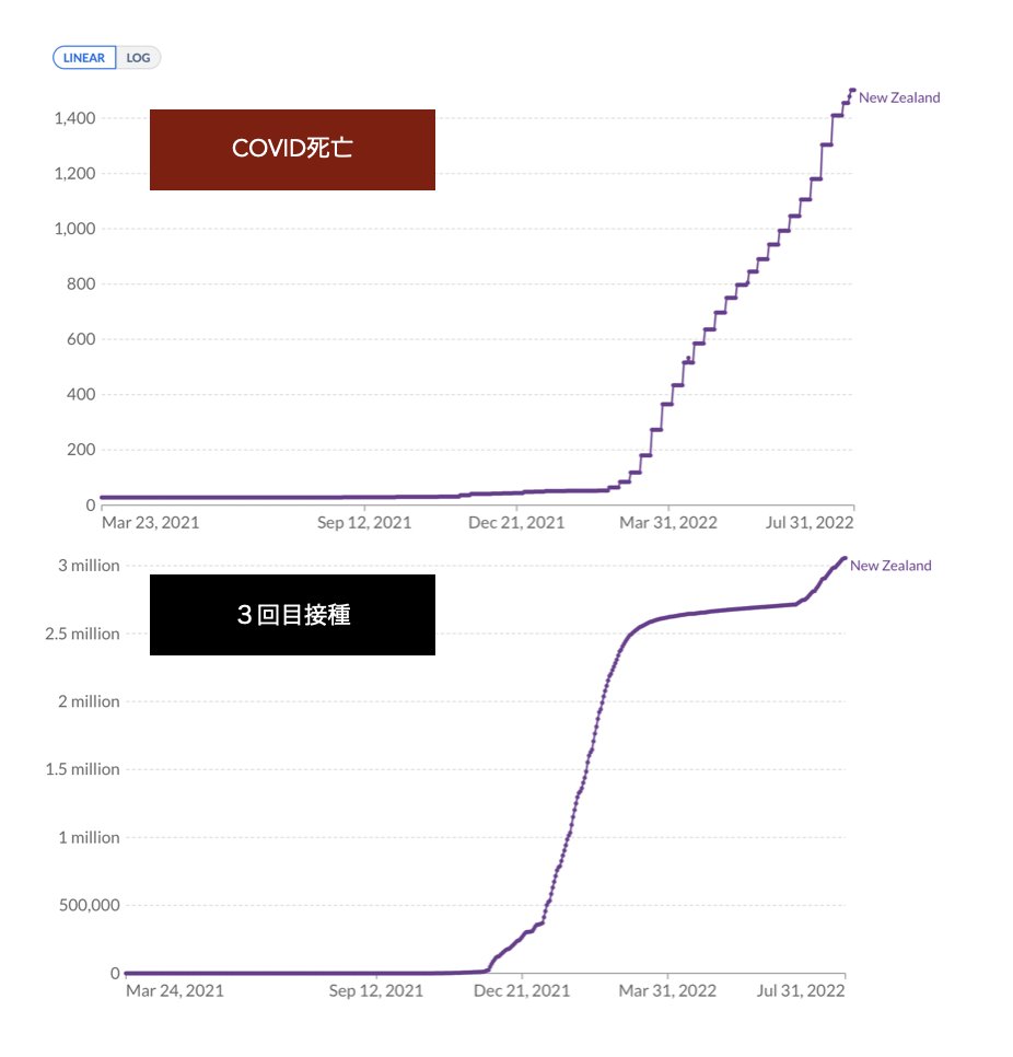 ワクチン高接種のニュージーランドCOVID死亡率が「記録的水準に(ロイター)」それにしても見事な相関グラフ。